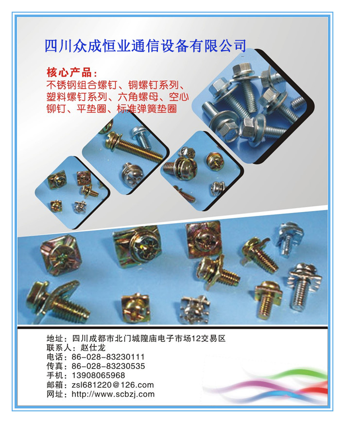 主要經營項目:標準件。電子產品、五金交電、主要經營:不銹鋼標件、銅鍍銀調試螺釘、碳素鋼標件、各種非標件、銅柱訂做,電子元器件,專業代理安費諾QMA,SMA,BNC等系列接頭,通信射頻線,連接器,尼龍扎帶等
